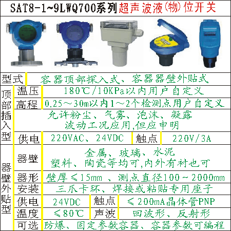 SAT8-1~9LWQ700系列超声波液(物)位开关