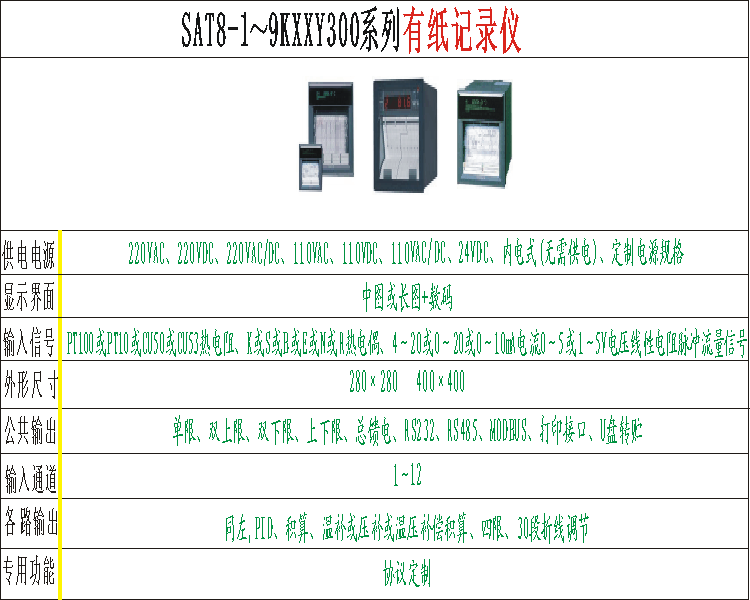 有纸记录仪:SAT8-1~9KXXY300
