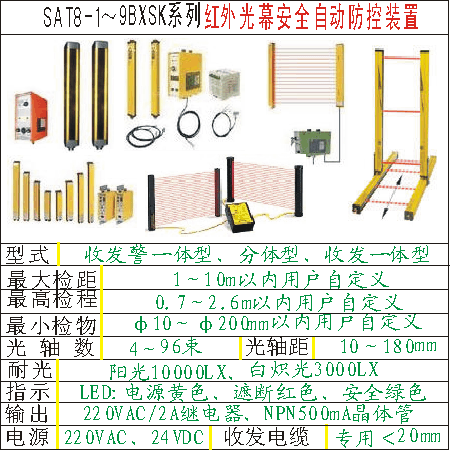 红外光幕安全自动防控装置:SAT8-1~9BXSK